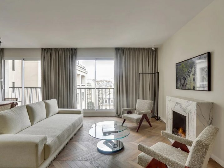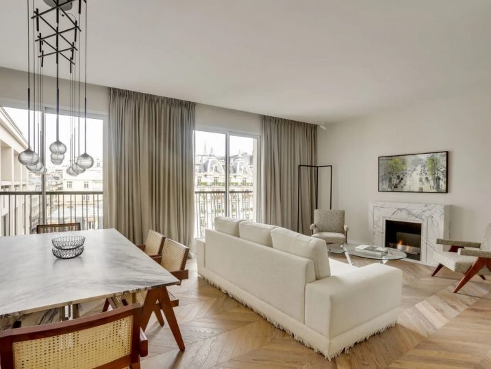 Located in the heart of Avenue Montaigne, facing the prestigious Plaza Athénée hotel, on the 7th floor of a beautiful secure building, 100 sqm apartment completely fully renovated with the finest materials.