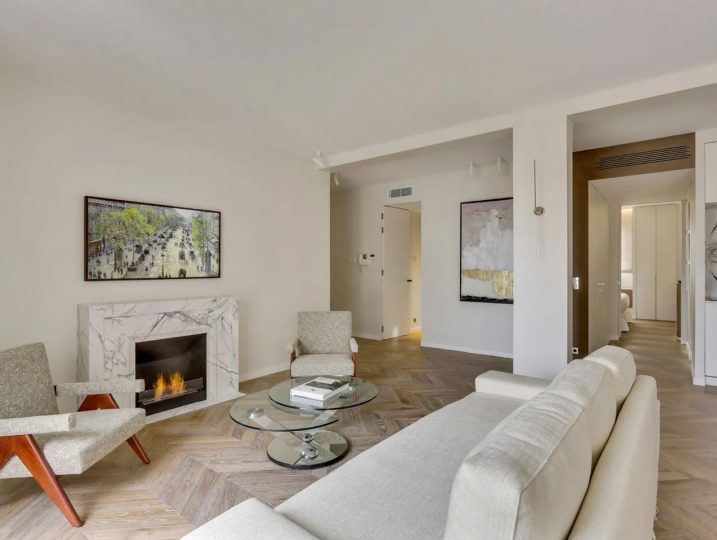 The property comprises: a living-dining room overlooking avenue Montaigne, an open-plan kitchen, a master bedroom with dressing room and bathroom, a 2nd bedroom with separate shower room and Wc. This prestigious apartment is air-conditioned, quiet and bright. Home automation, Lilac marble, Hungarian point parquet, ethanol fireplace and Sofitel bedding for this luxury pied-à-terre sold furnished and decorated. A cellar completes this property.