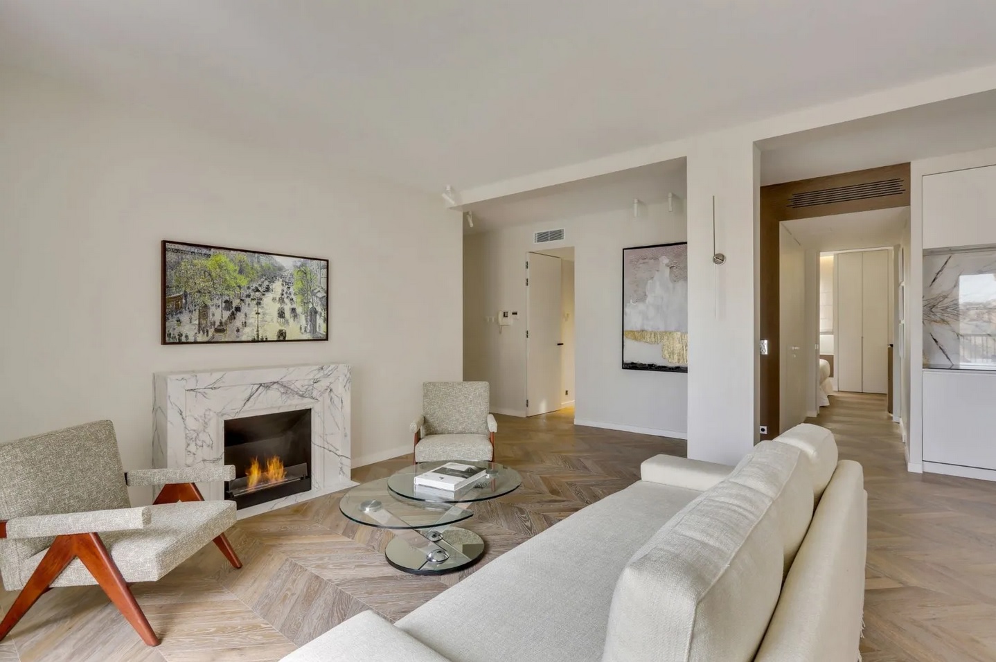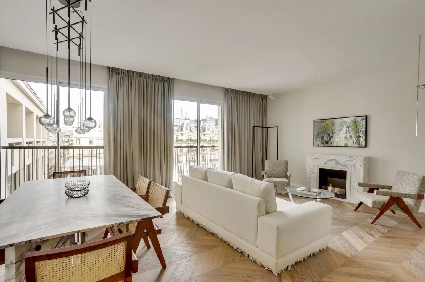 The property comprises: a living-dining room overlooking avenue Montaigne, an open-plan kitchen, a master bedroom with dressing room and bathroom, a 2nd bedroom with separate shower room and Wc. This prestigious apartment is air-conditioned, quiet and bright. Home automation, Lilac marble, Hungarian point parquet, ethanol fireplace and Sofitel bedding for this luxury pied-à-terre sold furnished and decorated. A cellar completes this property.