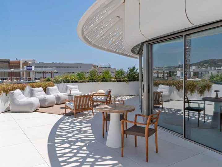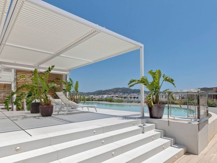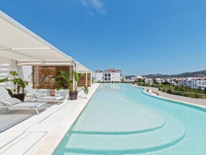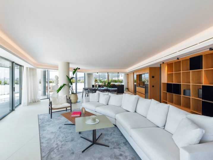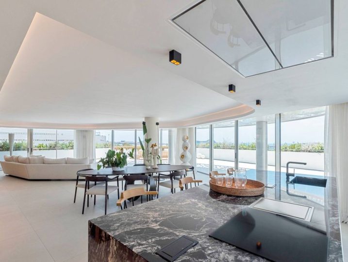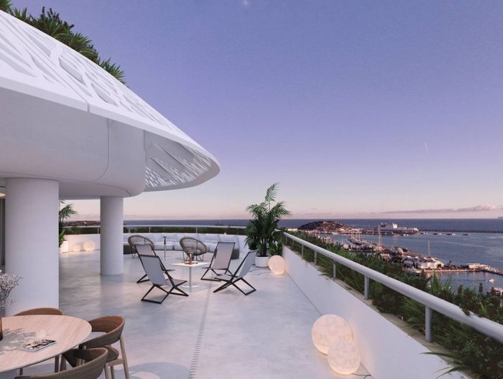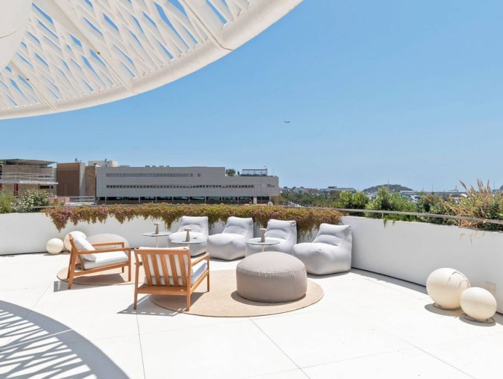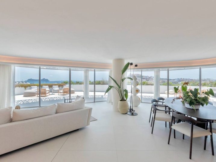 Exclusive penthouse of 1,269 sqm located in a high-end building in Ibiza, distributed over two floors that combine elegance, contemporary design, and the authentic Mediterranean lifestyle.