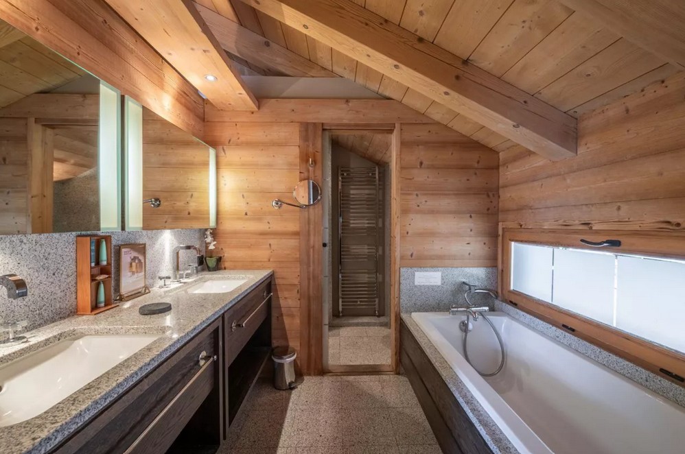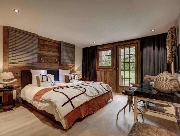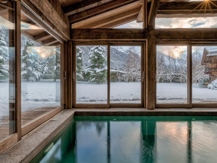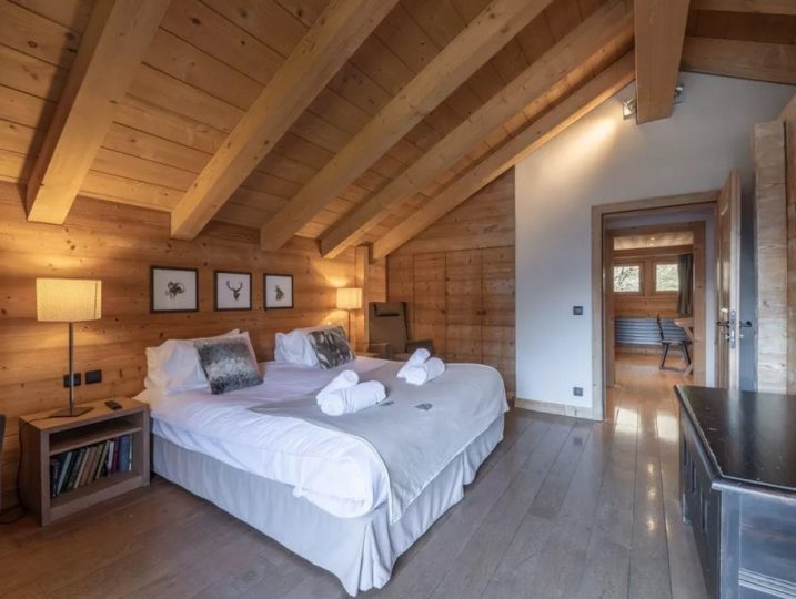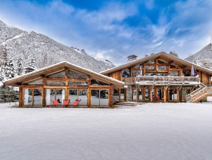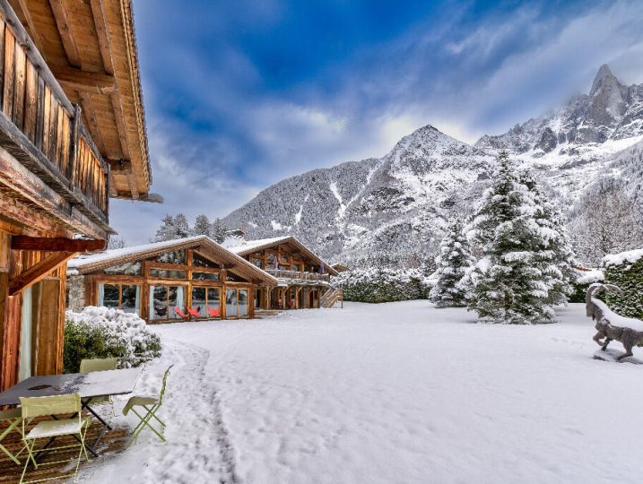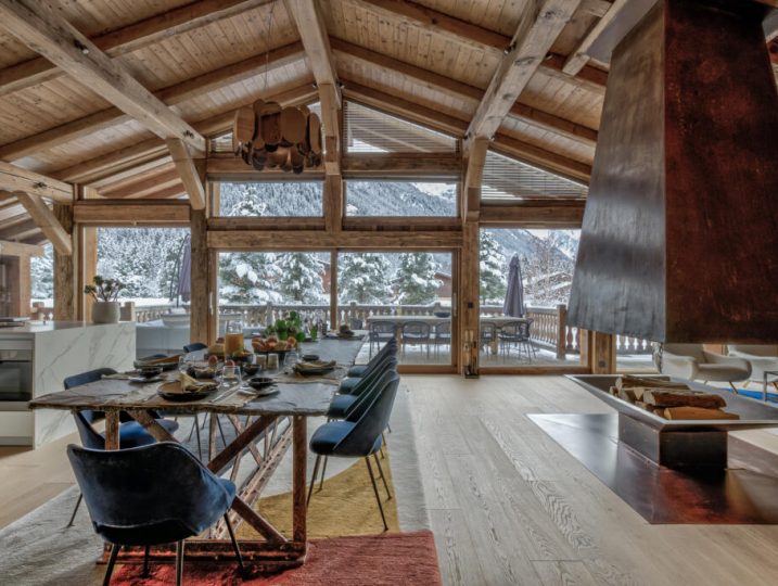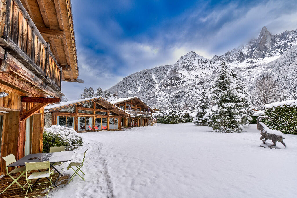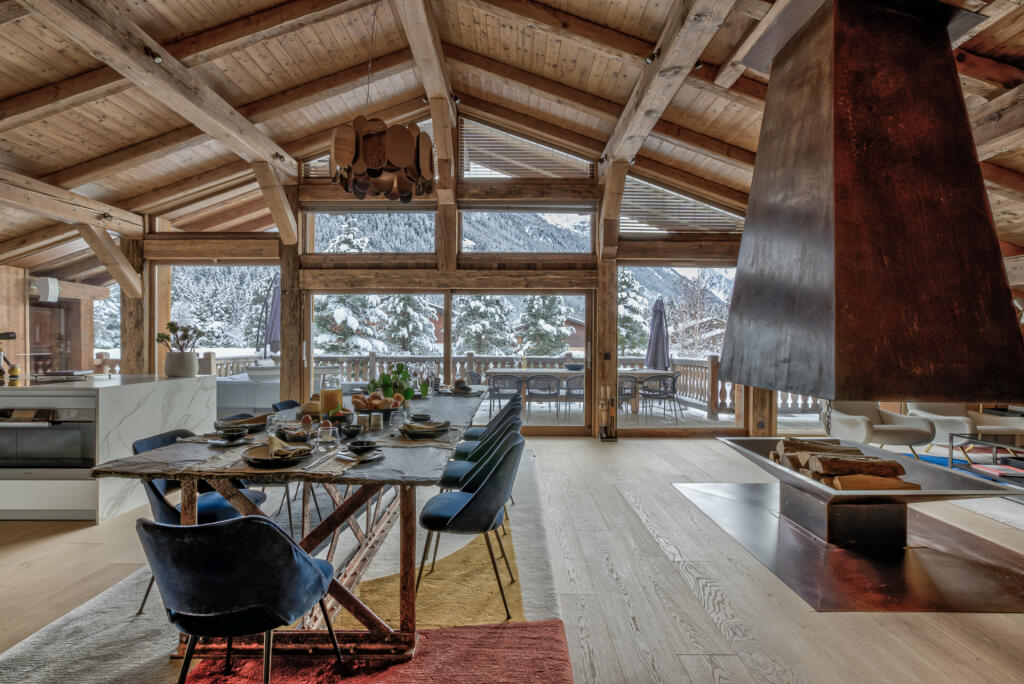 Located in the heart of the popular Les Bois area near the Flegere ski lift and the Chamonix golf course, this iconic property of 490 m2 of living space, completed by a 42 m2 garage, sits on an exceptionally private plot of 3834 m2. Offering a 360° panoramic view of the surrounding mountains, this chalet benefits from a rare and privileged location. Built in 2009 with very high quality finishes, the chalet was completely renovated in 2021. The main chalet, spread over two floors, is composed as follows: