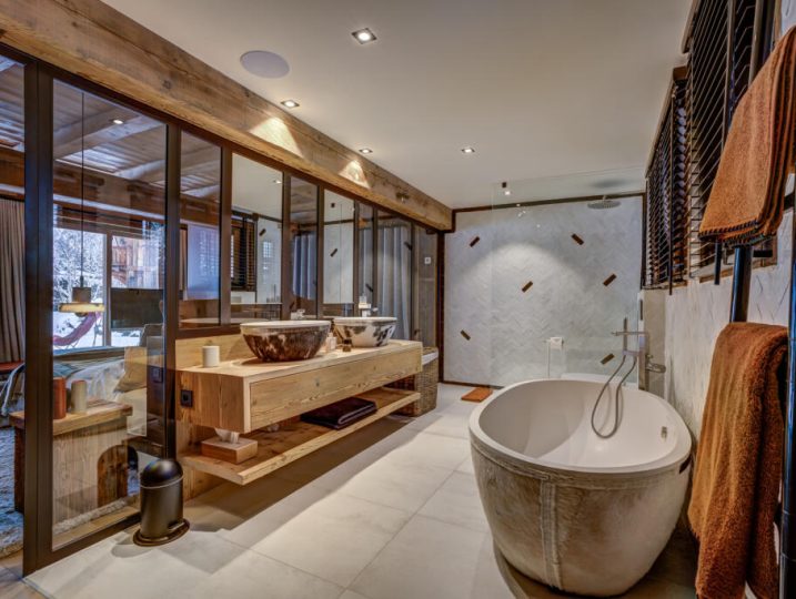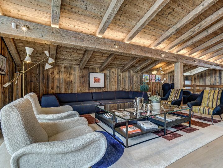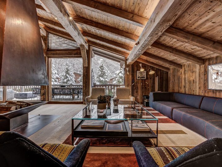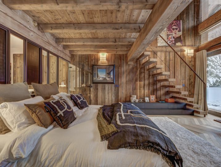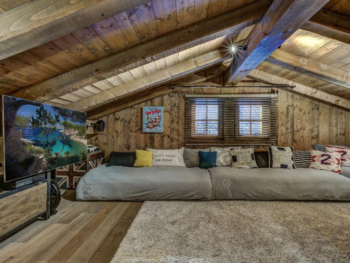 First floor: an impressive living room of 126 m2 with double height “cathedral” ceiling which opens onto a 40 m2 terrace via large bay windows, offering one of the most spectacular views of the Mont Blanc massif. One 21 m2 bedrooms with own bathroom. A 21 m2 media area, separated by an elegant glass partition, completes this floor, in addition to two terraces.