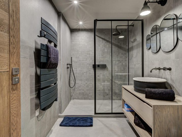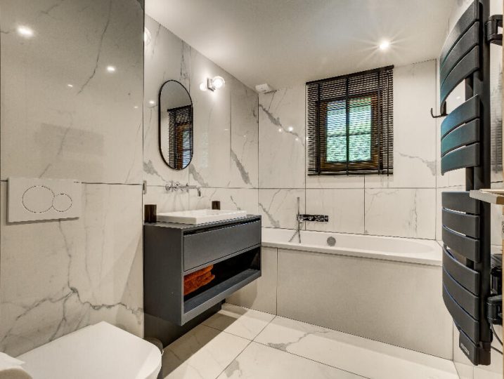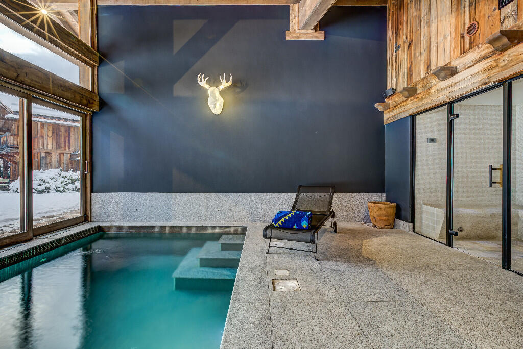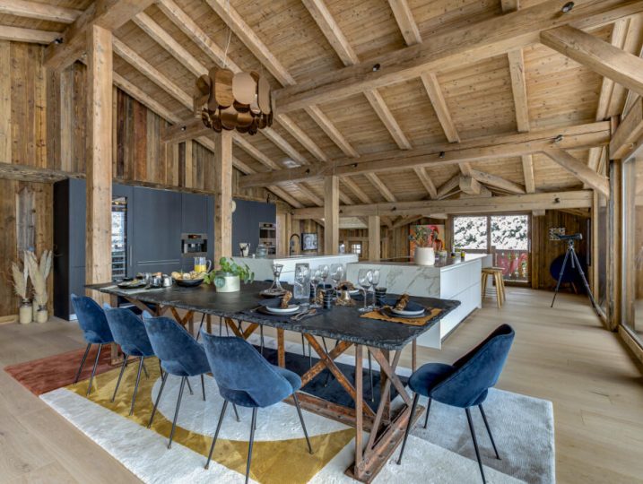 The 42 m2 garage, currently being finished, will accommodate four vehicles and has charging stations as well as a storage space. The chalet is equipped with a heat pump / aquathermal heating system and benefits from high-speed internet connection.